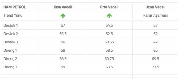 Amerikan tipi ham petrolde 57.70$ seviyesinin yukarı yönde kırılması ve bu seviyenin üstünde yerleşik seyirler olması halinde yakın direnç olarak 58.20$ seviyesi izlenebilir.
